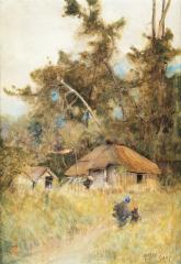大道具の中の人物 (a) Three Figures in Setting (a)