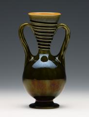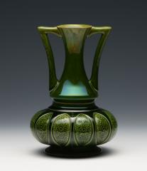 緑釉把手付花瓶 Vase Based on Glass with Two Handles, Green Glaze