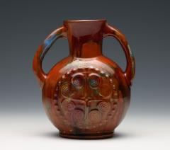 彩釉刻文把手付扁壺 Celtic Vase with Two Handles