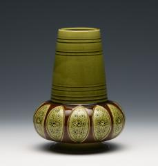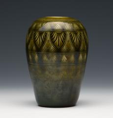 緑釉植物刻文花瓶 Vase with Incised Plant Decoration, Green Glaze