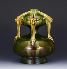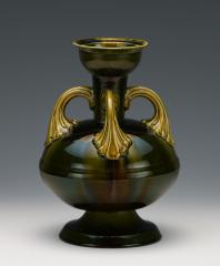 緑釉アカンサス型手付壺 Vase with Plant Handles, Green Glaze