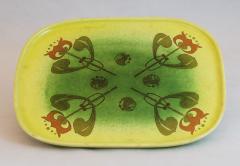 黄緑釉アールヌーヴォー風装飾文皿 Plate with Design of Art Nouveau Style, Yellow-Green Glaze