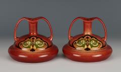 紅地線文把手付花瓶(一対) Vases with Handles, Painted Decoration