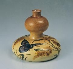 色絵蝶花模様瓢箪形壺 Vase with Painted Decoration of Moth