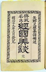 『経國美談 後編』(纂訳兼出版人 矢野文雄、報知新聞社発行) "Young Politicians of Thebes, II"
