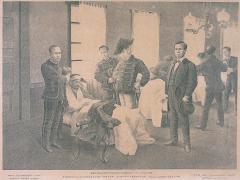 車駕臨御大坂陸軍臨時病院親自吊慰之図 Inquiry of the Emperor Meiji at the Military Hospital, Osaka