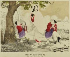 常盤雪中抱孤出図 Tokiwa with her Children in Snow